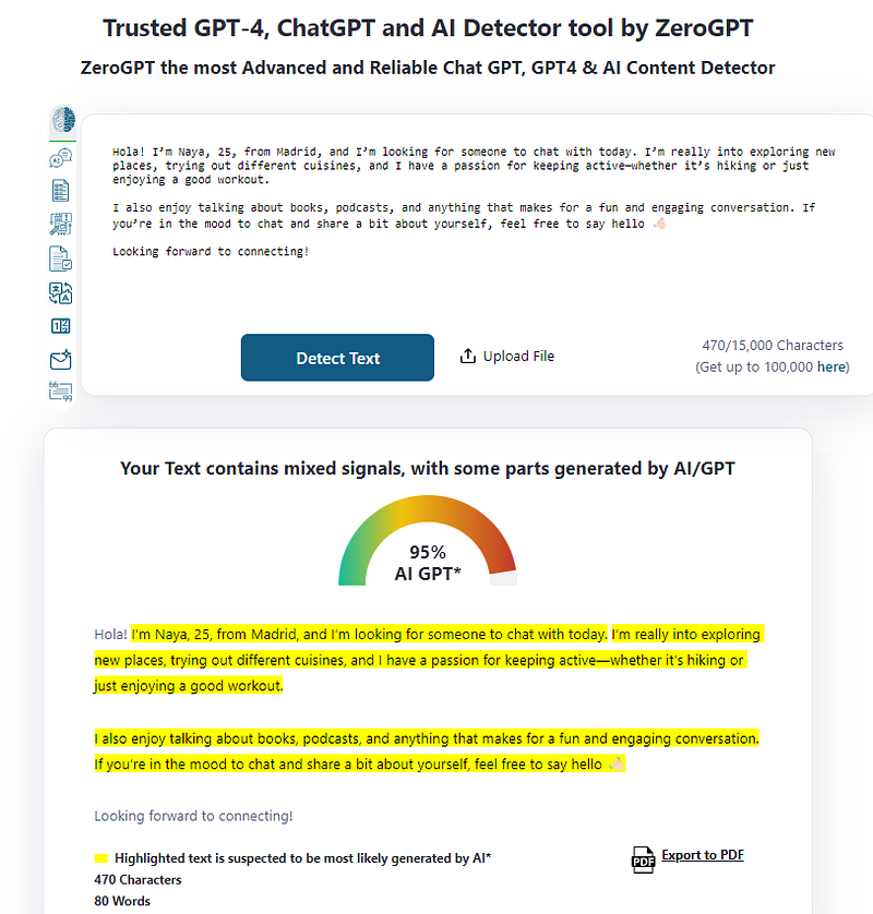 So I copied one of her posts, went to ZeroGPT, and tested the text.