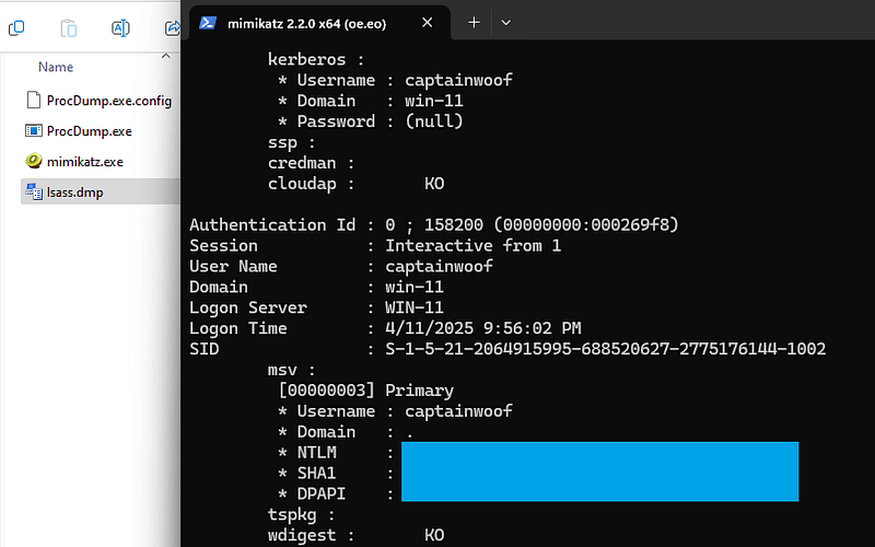 To verify if the dumping was correctly done, I used mimikatz to parse it: